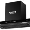 Máy hút mùi Chef’s EH-R107E3D có thiết kế dạng chữ T nhỏ gọn, bề mặt phủ kính cường lực màu đen sang trọng, dễ dàng lau chùi vệ sinh.