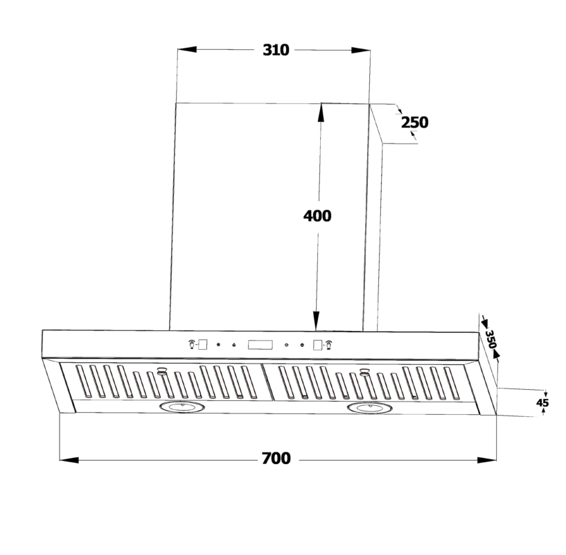 Khác biệt với những hút mùi trên thị trường, hút mùi EH-R107E3D được thiết kế với chiều ngang 700mm, chiều sâu 350mm hoàn toàn phù hợp với chiều sâu của nhiều thiết kế tủ bếp trên thị trường hiện nay. Khi lắp vào tủ bếp, phần cánh của hút mùi sẽ nằm gọn trong tủ, không bị nhô ra như những hút mùi khác. Đây là một ưu điểm lớn của model này, giúp tăng thêm tính thẩm mỹ cho căn bếp.