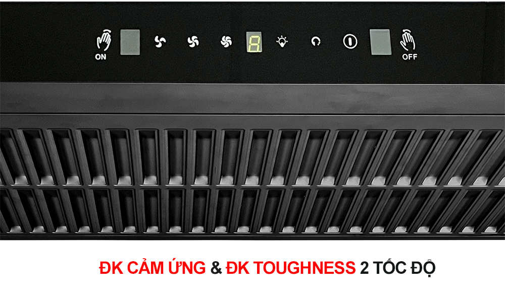 Với phương thức điều khiển không chạm. Bạn thực hiện vẫy tay theo hướng từ trái qua phải để bật – tăng công suất. Vẫy tay theo hướng ngược lại từ phải qua trái để giảm công suất- tắt nguồn. Đây là tính năng ưu điểm của hút mùi, rất tiện lợi vì trong quá trình nấu nướng, khi tay ướt hoặc bẩn bạn không cần chạm vào hút mà vẫn có thể điều khiển được hút hoạt động theo nhu cầu